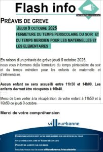 • JEUDDI 9 OCTOBRE GRÈVE : FERMETURE CANTINE ET PERISCOLAIRE DU SOIR